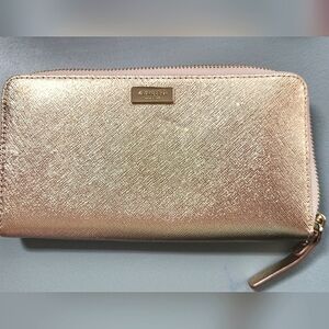 Kate Spade Women's Rose Gold Zip Around Wristlet Wallet Nwot