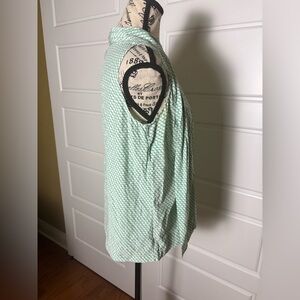 Add a pop of color and sophistication to your wardrobe with this Kate Spade New York sleeveless blouse in a refreshing sea green tone. Featuring a playful dotted pattern, a front keyhole detail with button closure, and soft pleats for added shape, this top is crafted from a luxurious silk blend that drapes beautifully. Size 4 and in nice pre-owned condition with no major flaws—perfect for work, brunch, or layering under a blazer.