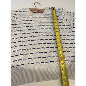 Kate Spade Womens Short Sleeve Knit Sweater Blue & Cream Geometric Pattern Cotto