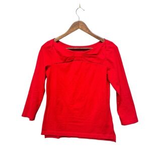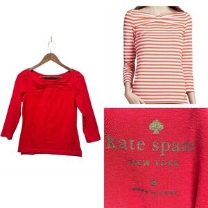 Kate Spade Women's Top Sz S Wheaton Cotton Blend Red Tunic Long Sleeve Bow Shirt