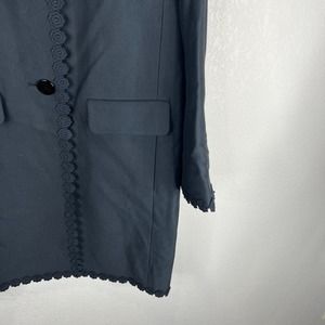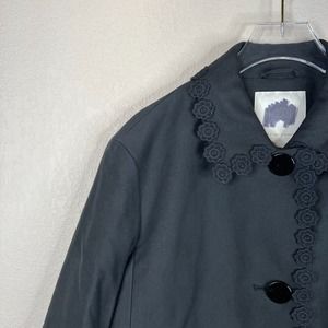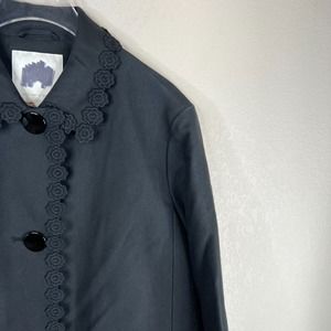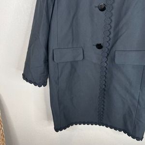 Kate Spade Womens Trench Coat Jacket Size 4 Black Floral Lace Trim Cotton Wool