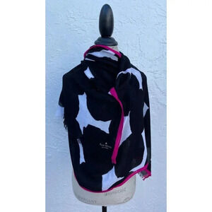 Kate Spade Womens Wool Frayed Edges Wool Scarf Shawl Black White 25x39