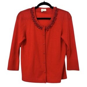 Kate Spade Wool Cashmere Embellished Button Front Cardigan Womens Medium Red