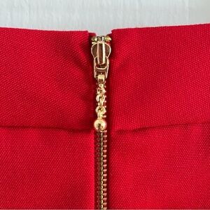 This chic red pencil skirt by Kate Spade is perfect for cocktail events and professional settings. Its knee-length design and sleek silhouette provide a polished and sophisticated appearance. The vibrant red hue adds a bold statement to any ensemble, making it a versatile addition to your wardrobe.