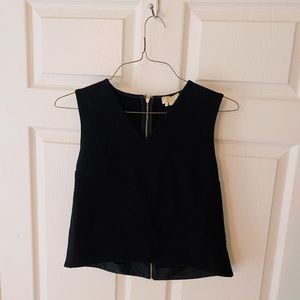 Black V-neck wool Kate Spade shell, with exposed gold zipper. High- low hem with silk lining. Perfect for fall! Layer it over a crisp button up or wear it alone. Original retail was $228.