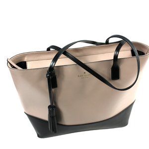 Kate Spade Wright Place Karla Two Tone Almondine & Black Leather Tote