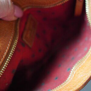 This Kate Spade wristlet clutch pouch is a stylish and functional accessory for any woman. The brown leather exterior is accented with beautiful hardware. The bag has a zip measures 8 inches in width and 4 inches in height. The small size makes it perfect for carrying your essentials on a night out or for everyday use. The lining is made of black fabric and the handle/strap is made of matching leather.