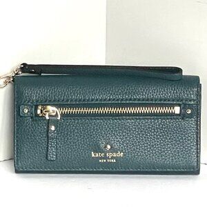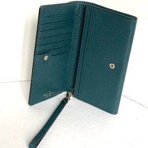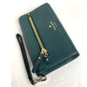 Kate Spade Wristlet Wallet Phone Womens Green Bifold Slim Leather Bifold Tech