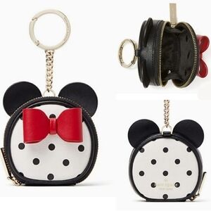 Kate Spade X Disney Minnie Mouse Coin Purse Key Fob Red Bow Polka Dot Bag Charm