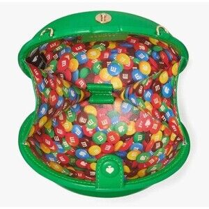 Kate Spade X M&M's GREEN Candy Micro Chain Coin Purse Leather 3D Crossbody NWT