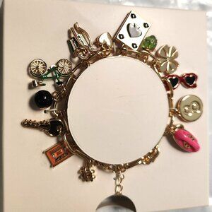 The Kate Spade New York x Target Mixed Novelty Chunky Charm Bracelet is a stylish and playful accessory that combines elements of beauty, home & garden, luck, toys & games, bohemian fashion, and sports. Featuring gold tones and an oval link chain, this bracelet is made of metal and showcases a variety of charms reflecting different themes and motifs. With its unique design and collaboration with the renowned brand Kate Spade New York, this charm bracelet is sure to add a touch of whimsy and personality to any outfit or accessory collection.