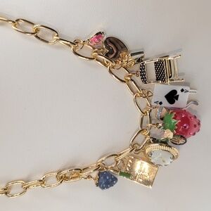 Elegant Kate Spade necklace featuring a gold chain with colorful charms. Perfect for adding a playful touch to any outfit.