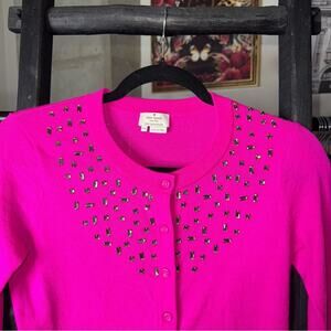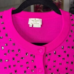 Kate Spade XS Hot Pink Wool Cardigan with Rhinestone Studs
