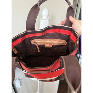 Kate Spade Y2K Canvas Tote Bucket Bag Red Brown