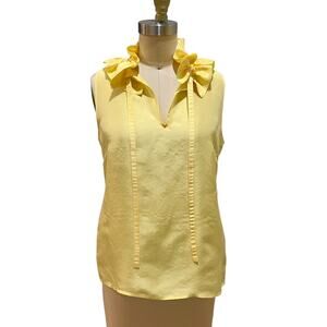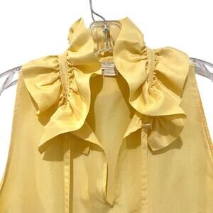 Kate Spade Yellow 100% Silk Sleeveless Top Blouse Ruffle Neck size 2