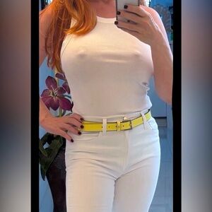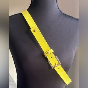 Add a pop of color to your outfit with this stylish yellow leather belt. Perfect for any occasion.