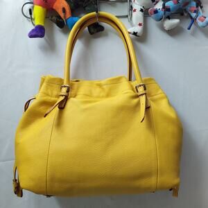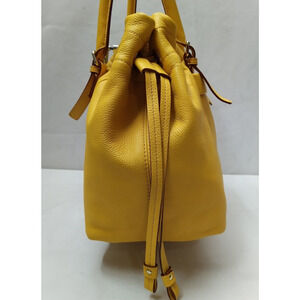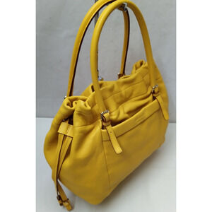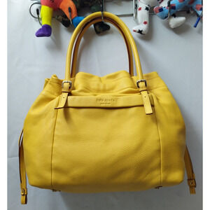 Kate Spade Yellow Pebbled Leather Drawstring Double Handle Satchel Shouder Bag