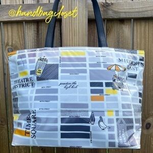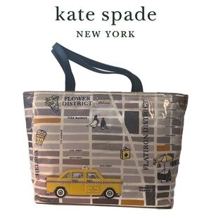 This is a very rare Kate Spade taxi bag NWT, but it has some minor markings. The penmark is shown but other small markings and yellowing from age possible. I’ve tried to clean the mark offf and it faded but still there. Fortunately, it’s a print design and blends in.