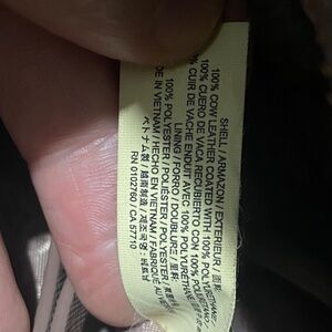 100% Cow Leather Coated for protection. Some light frays on handles. Light stain on the inside zipper pocket. Crossbody strap in good condition.