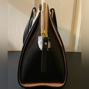 Brand new with tags. Warm vellum/black purse (rosy pink) Crossbody. Comes with strap Saffiano leather with capital Kate jacquard lining Zipper closure. Small pocket on inside. Back pocket with magnetic closure. Measurements: 7.5”h x 9.6”w x 4.5”d
