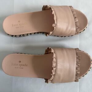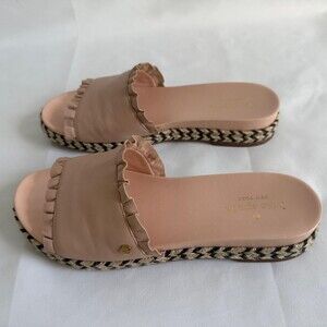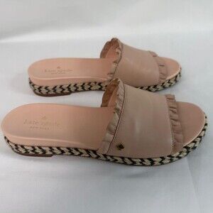 Kate Spade Zahara Ruffle Blush Pink Leather Slide Sandals Espadrilles Sz 7.5 M
