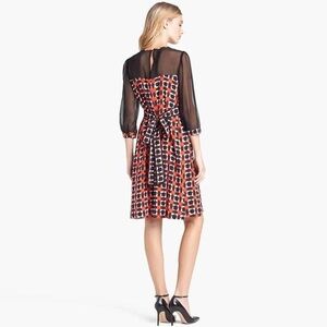 Kate Spade - Zaza Check Silk A-Line Semi-sheer Dress - Red and Black
