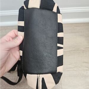 Kate Spade Zebra Print Canvas Crossbody Double Handle Purse Glam Statement. may show some signs of condition from use as pictured. measurements are approximately: 7 x 7 x 3 inches.