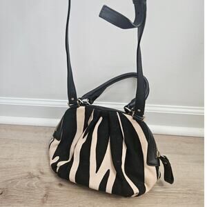 Kate Spade Zebra Print Canvas Crossbody Double Handle Purse Glam Statement