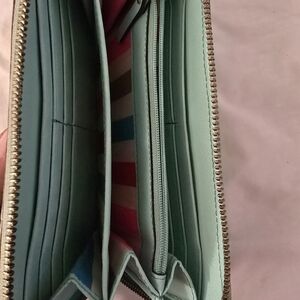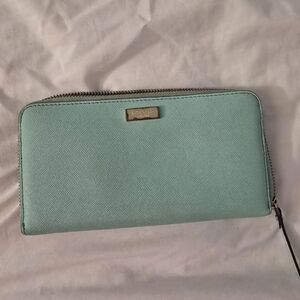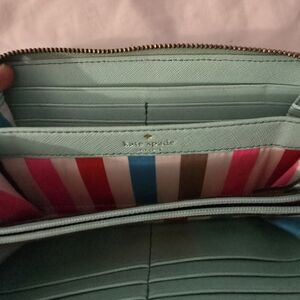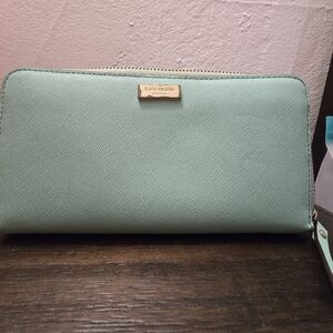 Hey, check out this nice Kate Spade green wallet! It's got a cool, modern style, you know? It's got a little wear on the logo, but it's in good shape inside and out. Take a look at all the pics, okay? 🤩 💚 👜 #Wallet #KateSpade #Style #Fashion #Green