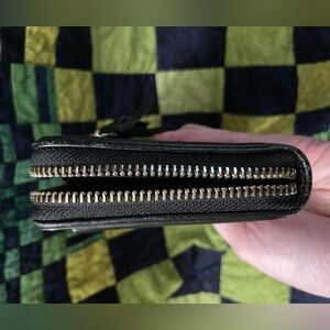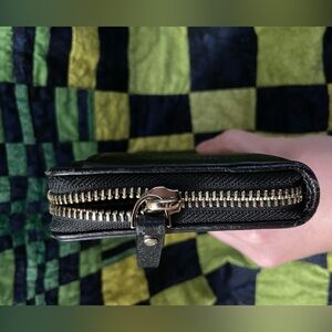 Kate Spade Zip-Around Wallet Black Pebbled Leather Many Compartments