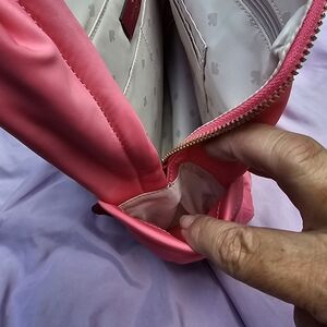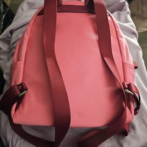 Cute Kate Spade backpack in Dahlia. Used only a few times. Approximately 9 across by 12 high and 5 deep. This is the large one. Has 2 outside pockets on either side, may fit a photo but probably not a water bottle. One front outside zip pocket. 3 slip pockets inside, and one zip pocket inside. from smoke free, pet friendly home. all sales final so please look over pictures.