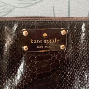 Elevate your accessory game with the Kate Spade New York Black Snake Skin Clutch Purse. Exquisitely crafted with a luxurious snakeskin pattern, this clutch showcases a sophisticated shiny finish that's sure to turn heads. At a compact 10 inches in width and 7 inches in height, it's the perfect size for your essentials without the bulk.