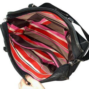 Kate Spade black cotton pin striped lining weekender travel bag suitcase