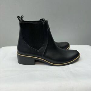 Kate Spade black solstice gold rubber bootie boots women's 9