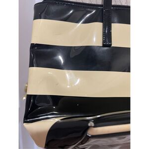 Kate Spade black and cream striped tote. Some minor wear as shown in photos