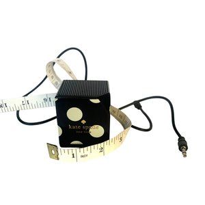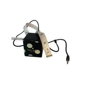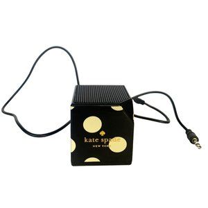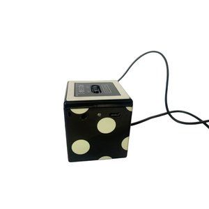 This is a Kate Spade Bluetooth Mini Cube Speaker that looks super cute with white polka dots on black, along with gold lettering. It comes with a cord and is in good condition. Please refer to the attached photos for more details. The speaker shown in the photos is the one you will receive.