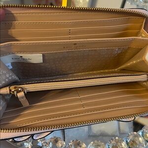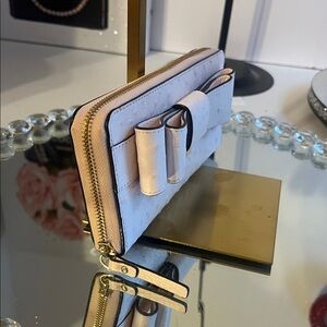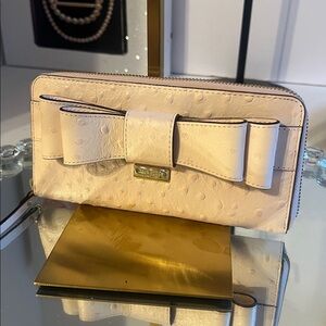 Kate Spade blush pink ostrich leather Large Bow zip round wallet