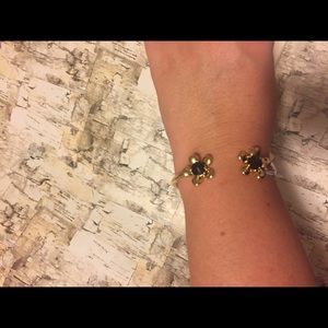 Gold bracelet with gold and black flowers. Brand new with tags. Includes dust bag.