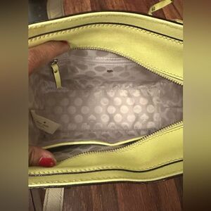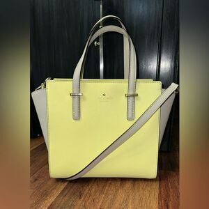 Chic and stylish, this Kate Spade bag features a vibrant yellow and cream design. Perfect for adding a pop of color to any outfit.