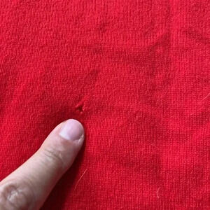 This is a very soft cashmere sweater. The chest is 30 inches the length this 21 inches. There’s a tiny hole in the back as shown in the last photo.