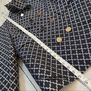Just in: Kate Spade navy blue silk/cotton blend short double breasted trench coat with gorgeous silvery metallic design is classic & refined. Excellent, like new condition. Size 8, see photos for measurements.