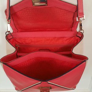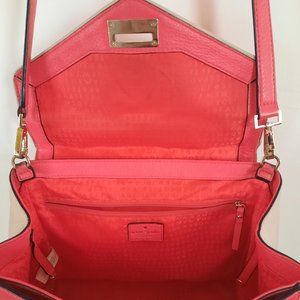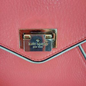 Gorgeous pink-and-cream pebbled leather crossbody satchel bag with top handle and envelope front by Kate Spade!