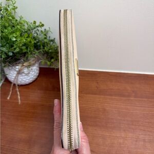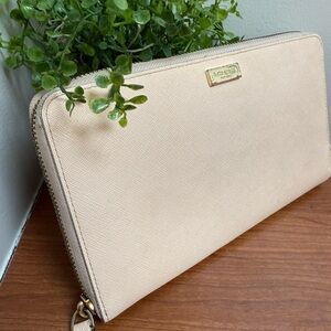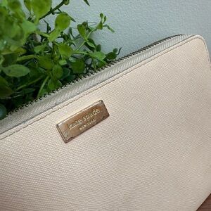 Kate Spade wallet in a soft beige pink tone. Perfect for everyday use. Simple and elegant design. Please look at all photos for any wear and call outs.