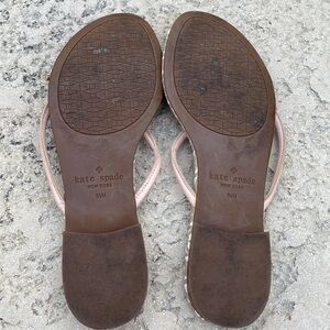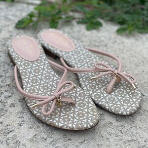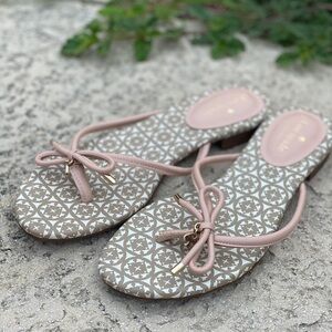 Kate Spade flip flops neutral tan with signature gold tone spade charm 8.5