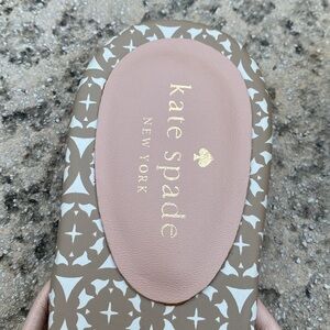 Adorable little flops by Kate Spade New York. Rubber soles and leather uppers. Tiny lift at the heel. Neutral color goes with everything.