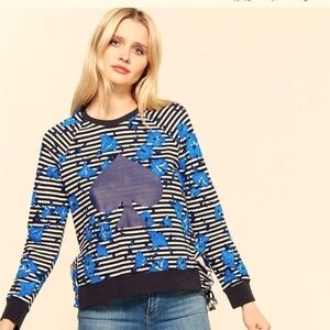 Kate Spade hibiscus blue and striped sweatshirt size small