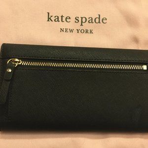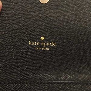 This leather black beauty is in excellent condition structurally!!!! The wallet has never been used but there is the minor issue shown in the cover shot. The "k" and the "p" are not shown. This has been in storage. I apologize I do not know what happened. Does not include the cell holder. Nor the duster. The wallet itself is beautiful! The measurements are 7"x4.5"x1". 1 zippered pocket, 2 bill compartments, and 9 card/ID sleeves!! All leather, snap closure. The snap is nice and tight brand new!!!! Price is made to match minor flaw. MSRP $158 all things aside this is a steal!!! PRICE IS FIRM!!!