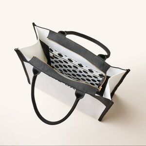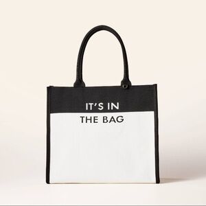 Make a statement with the Colorblock Knit Tote Bag from kate spade new york x Target. This structured tote has a bold white and black colorblock design with the words, "It's In The Bag." Made from woven polyester, this statement accessory features a double handle, zip closure, and an interior cell phone pocket, plus an available D-ring to add any of your favorite keychains or charms.
