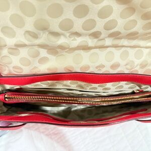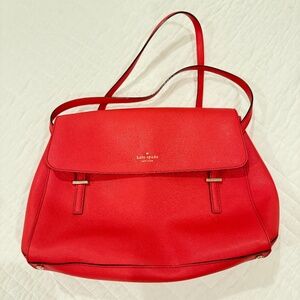 Like new condition! Kate Spade leather tote with magnetic flap closure, double straps and multiple storage compartments. Gold tone hardware including the base for protection. Approximately 11x15 in