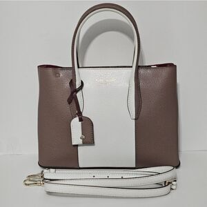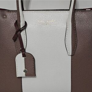 Kate Spade, medium sized tote in leather. Dark taupe and cream. EUC